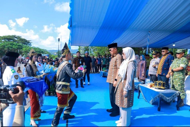 Gubernur Sultra bersama Ketua TP PKK dan unsur Forkopimda turut menyaksikan langsung jalannya pawai dari tribun utama di kawasan MTQ, sekaligus memberikan apresiasi kepada seluruh peserta yang berpartisipasi.
